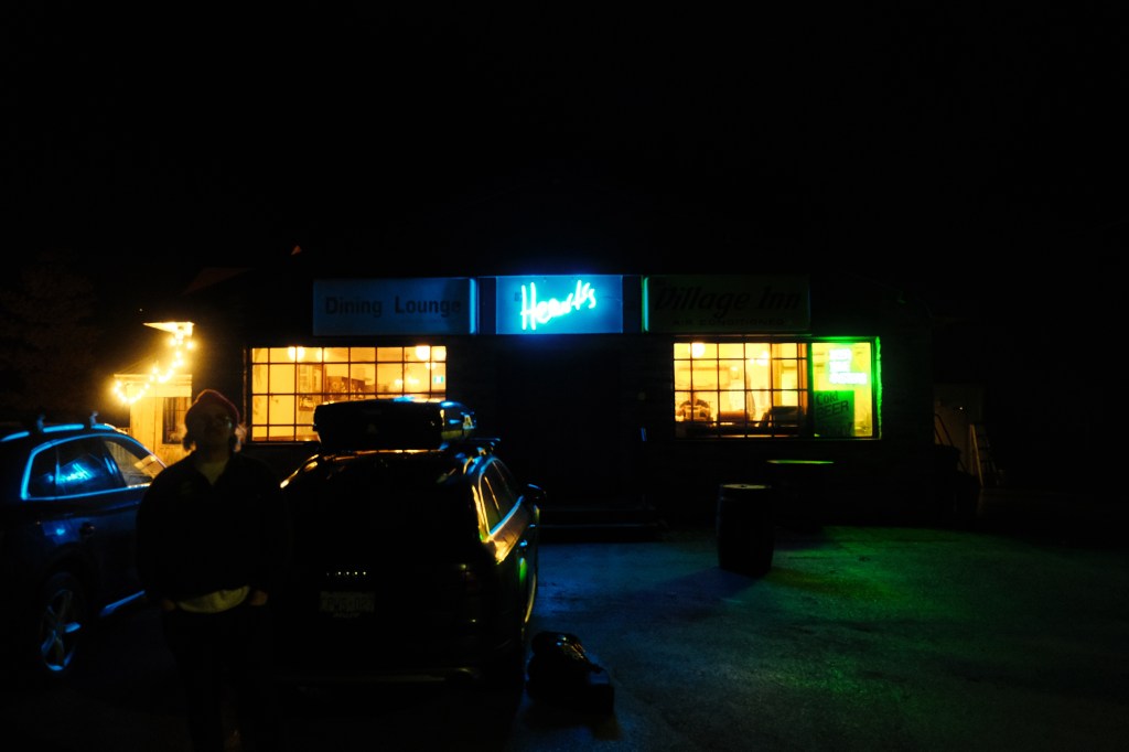 Leaving Hearts, we made our way down the winding road toward Matt’s chalet, the headlights casting a warm glow on the icy path. The brief drive took us deeper into the forest, where the towering trees were covered in a fluffy layer of snow that enveloped us in darkness as the night carried on.
